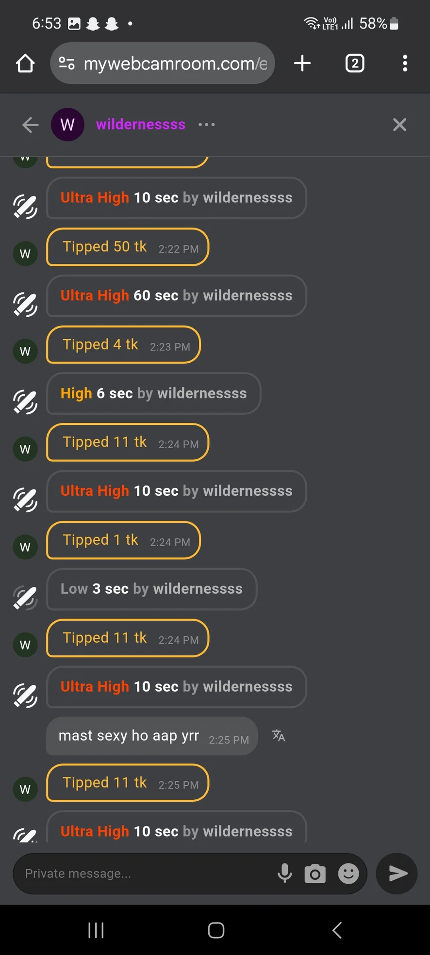 プライベートチャットでしていること